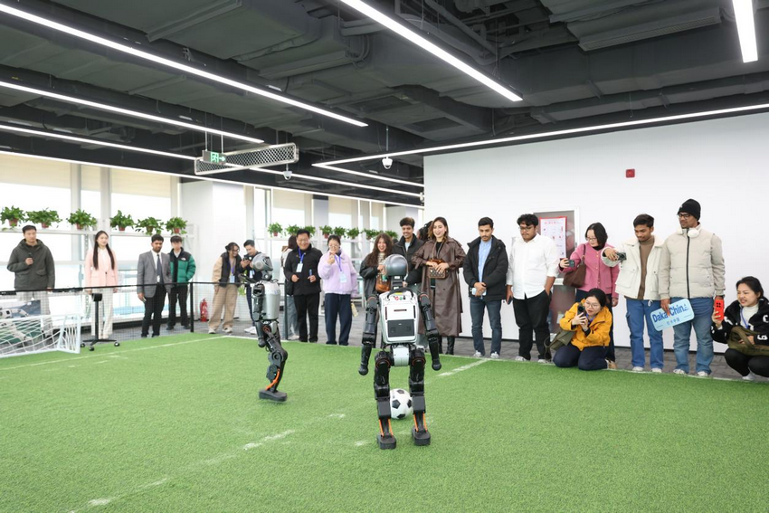 巴西网红塞米看着精准踢球射门的机器人连连称赞:“它们能叠衣服、做家务、冲咖啡,现在连足球都会踢,简直无所不能!”