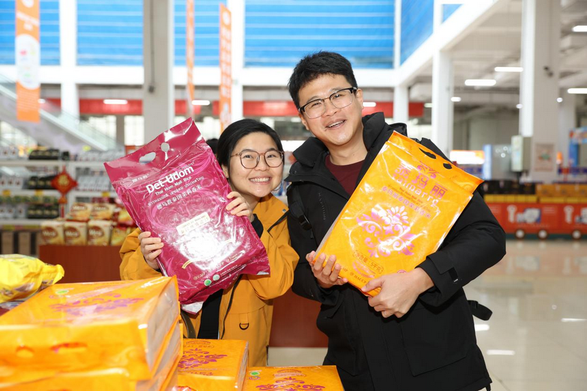泰国网红阿克夫妇在中欧班列进出口商品博览中心看见泰国香米