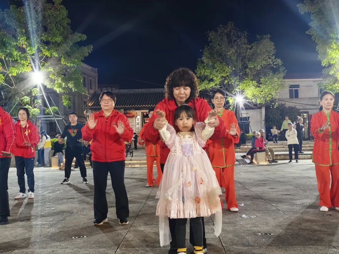 活动现场还设置了丰富的互动环节。不少市民跟随太极师傅学习八段锦、太极拳,在动静结合中体会传统养生文化的精髓。即便表演结束,仍有观众意犹未尽,继续与师傅交流功法,场面温馨而活跃。