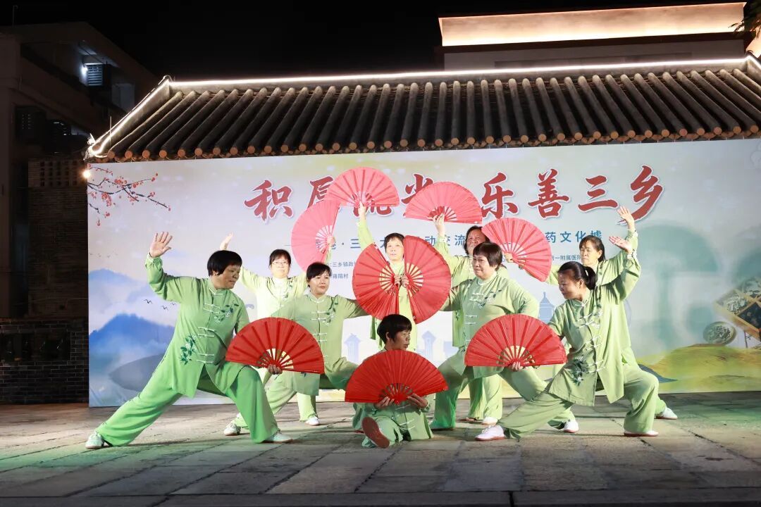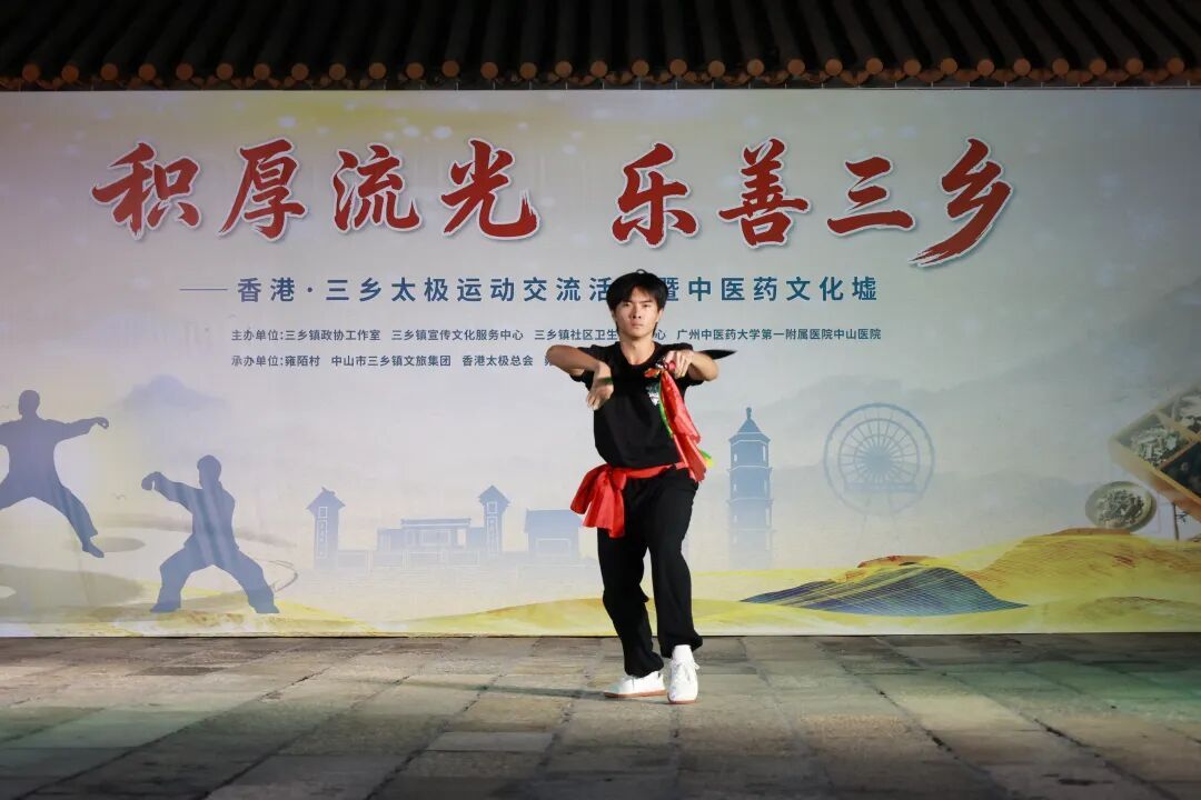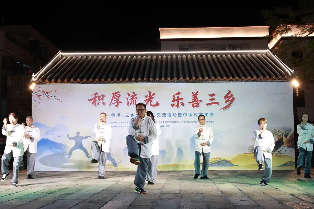 11月22日晚,恰逢小雪节气,三乡镇雍陌村艺术广场灯火通明、人流如织,“积厚流光 乐善三乡”香港·三乡太极运动交流活动暨中医药文化墟在此热烈举行。活动融汇太极展演与中医药文化体验,为市民呈现了一场兼具观赏性、互动性与实用性的传统文化盛宴。
