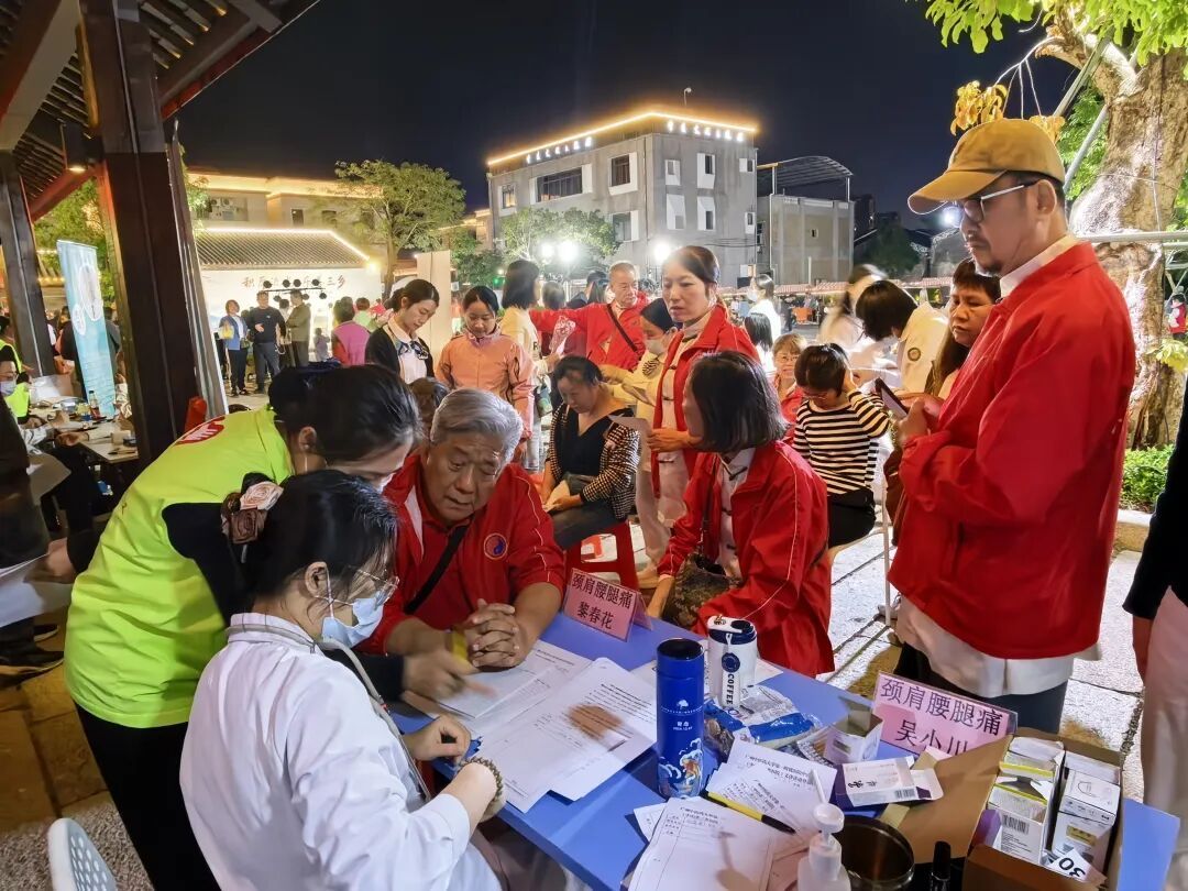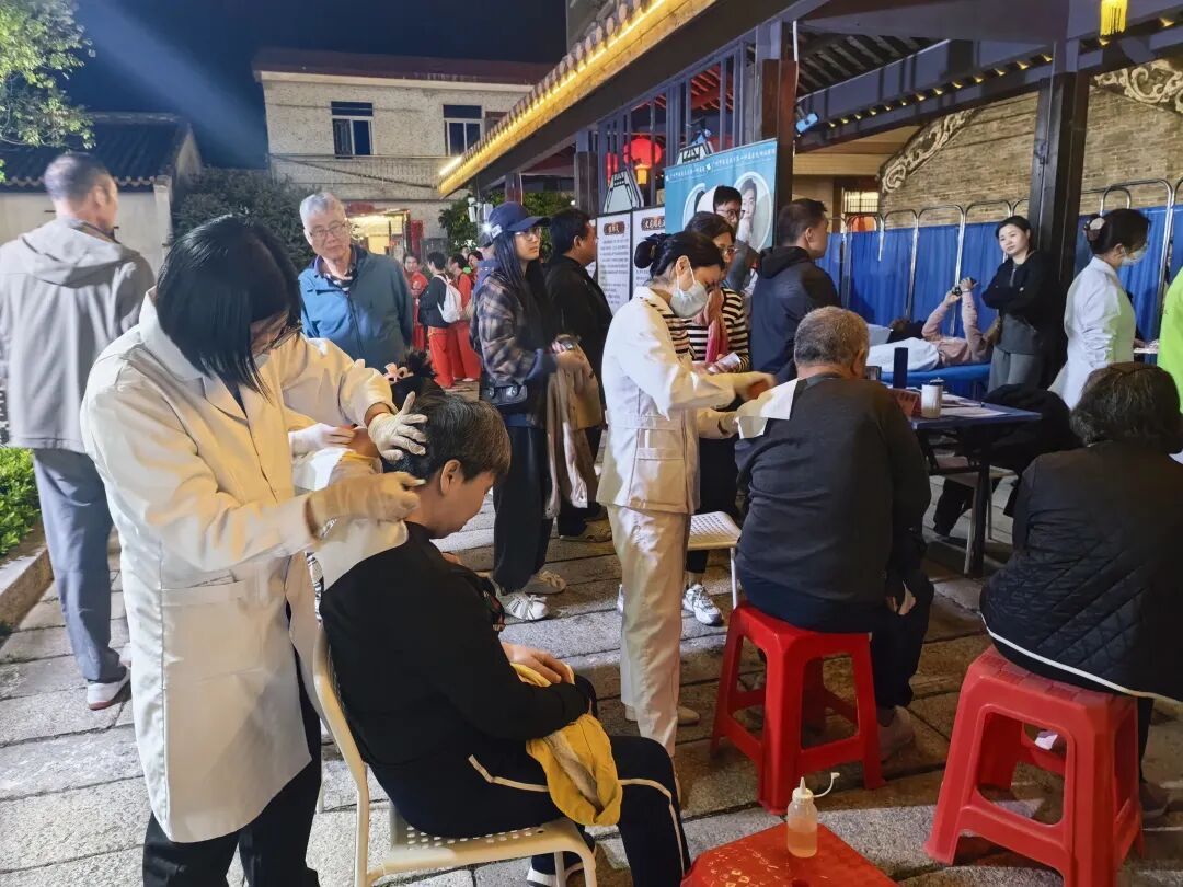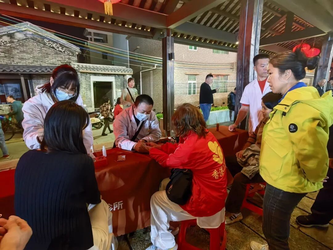 中医药文化墟区域同样气氛热烈。广州中医药大学第一附属医院中山医院的专家团队为市民提供专业义诊,医务人员耐心把脉问诊,细致解答健康问题,并提供测血糖、量血压等基础检查。刮痧、穴位贴敷、火龙罐等传统中医疗法体验区也排起长队,不少市民在亲身感受中惊叹于中医药的独特疗效。表演嘉宾们在表演结束后,也纷纷来到体验区,与市民一同感受中医技法的奥妙。